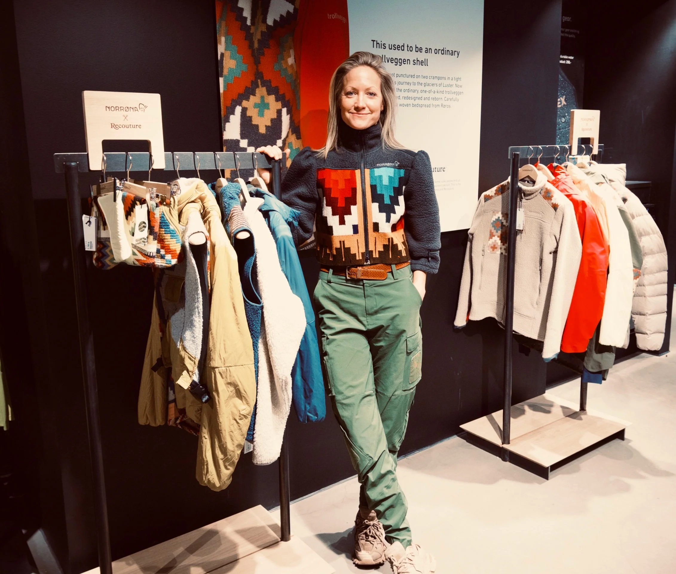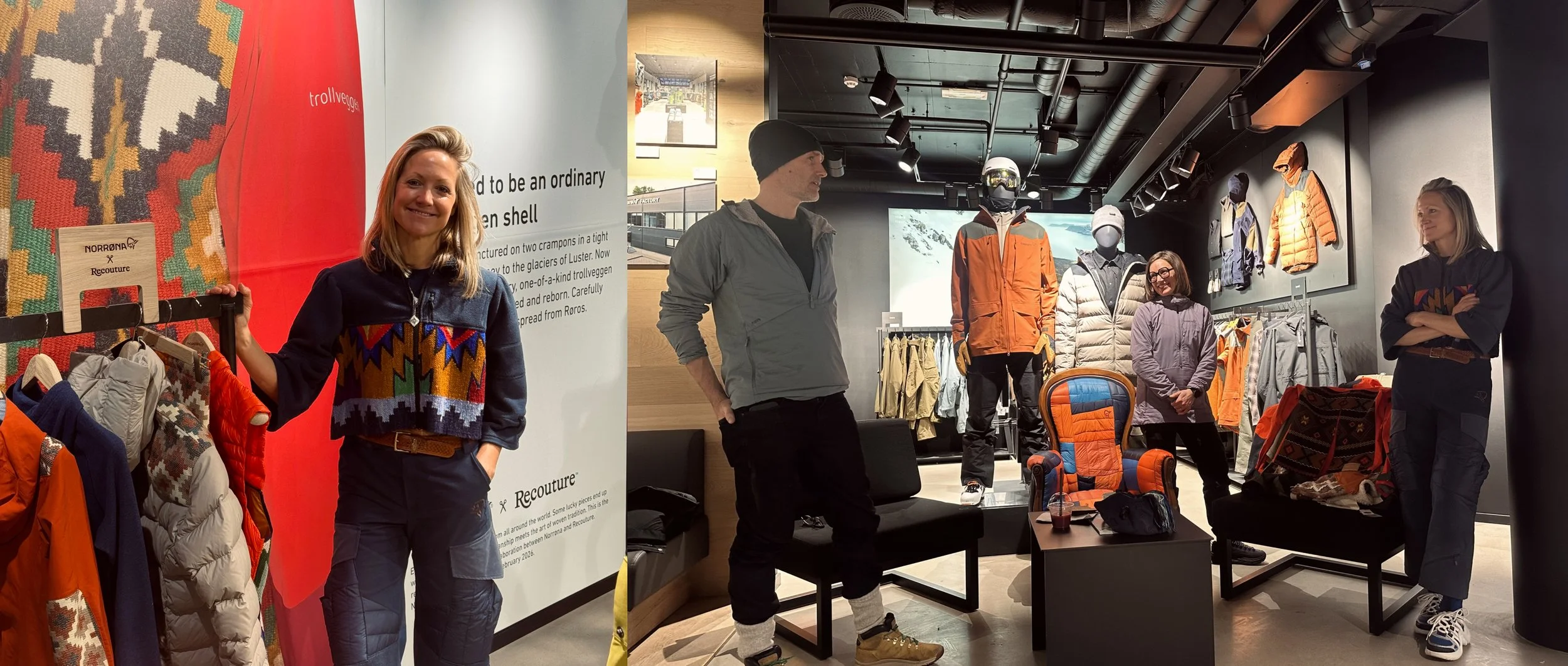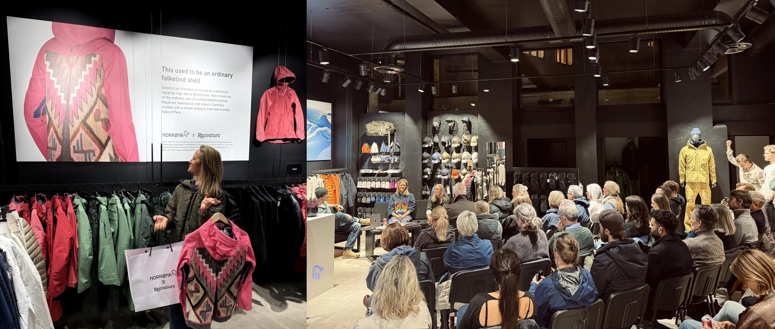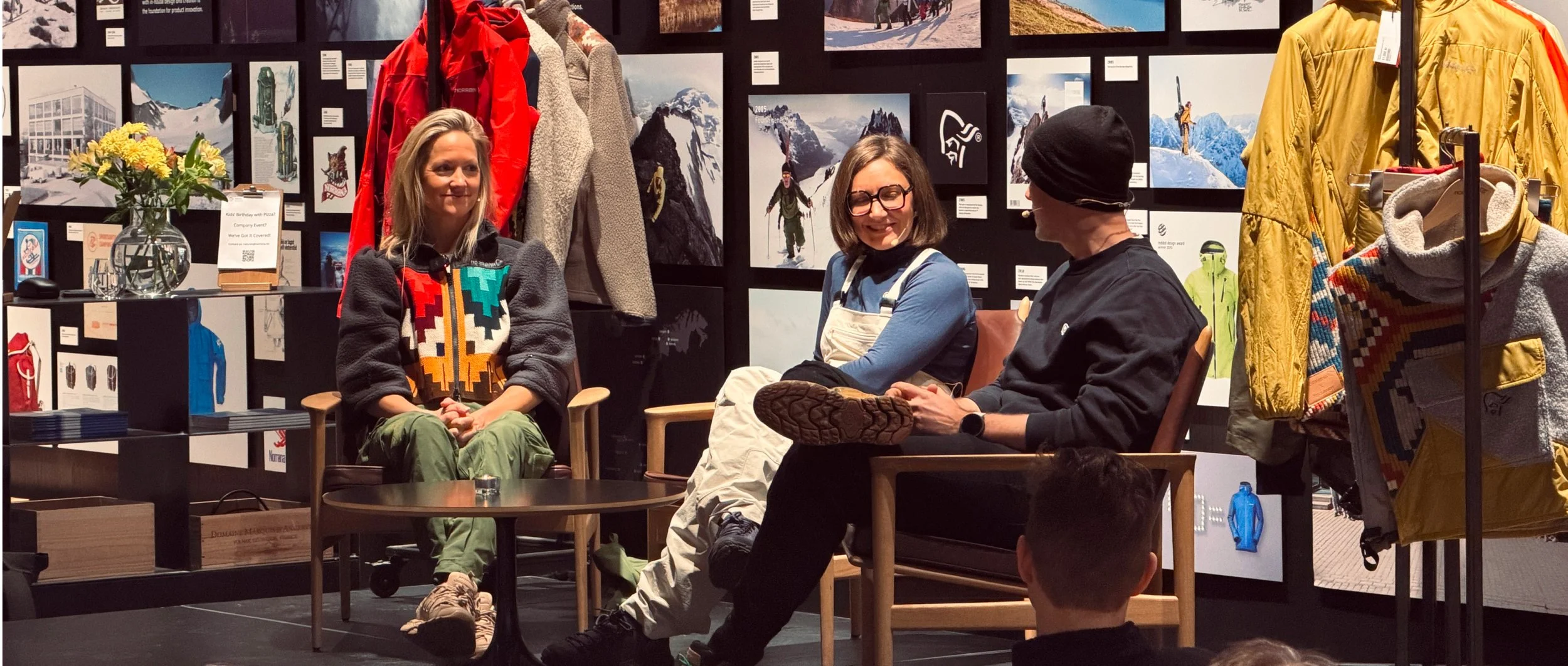 Me, Norrøna designer Jenni Fisk and curator Eivind Eidslott in conversation at Norrøna House.