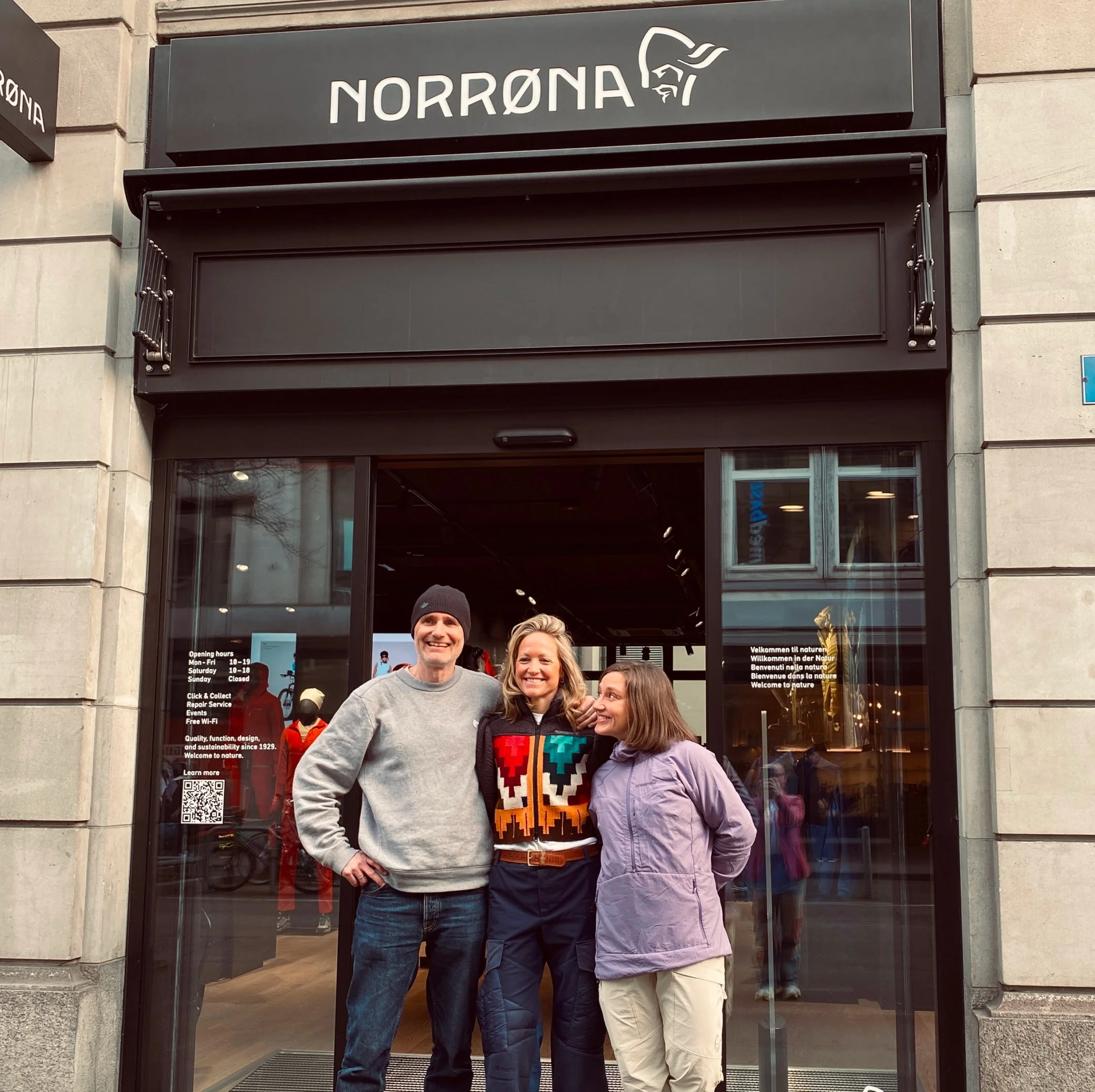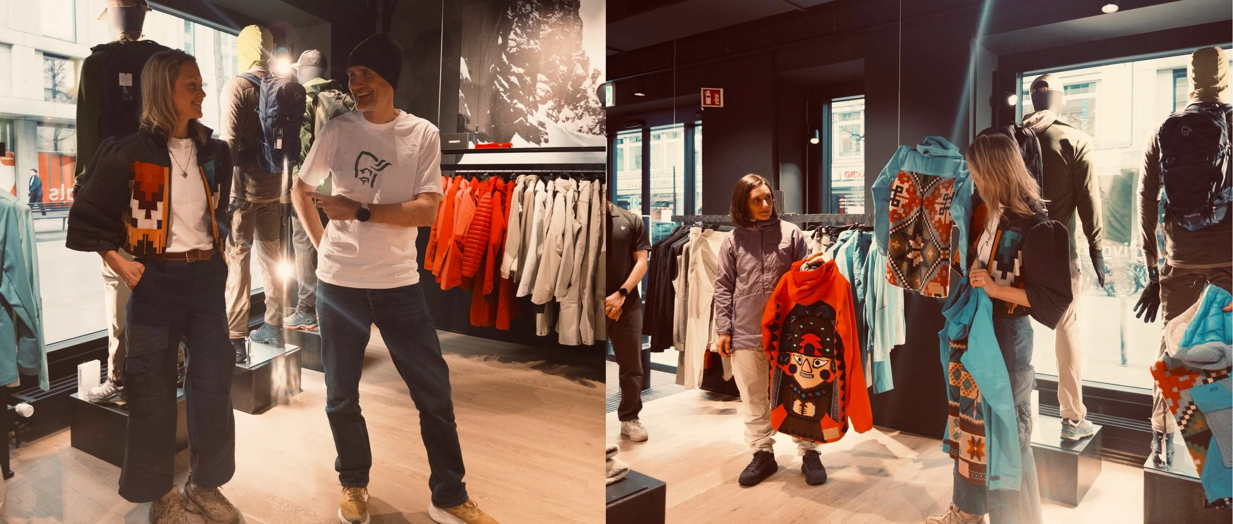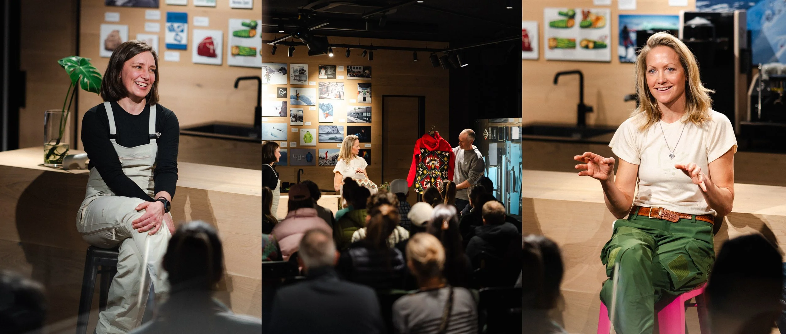 Me, Norrøna designer Jenni Fisk and curator Eivind Eidslott in conversation at Munich Flagship Store.