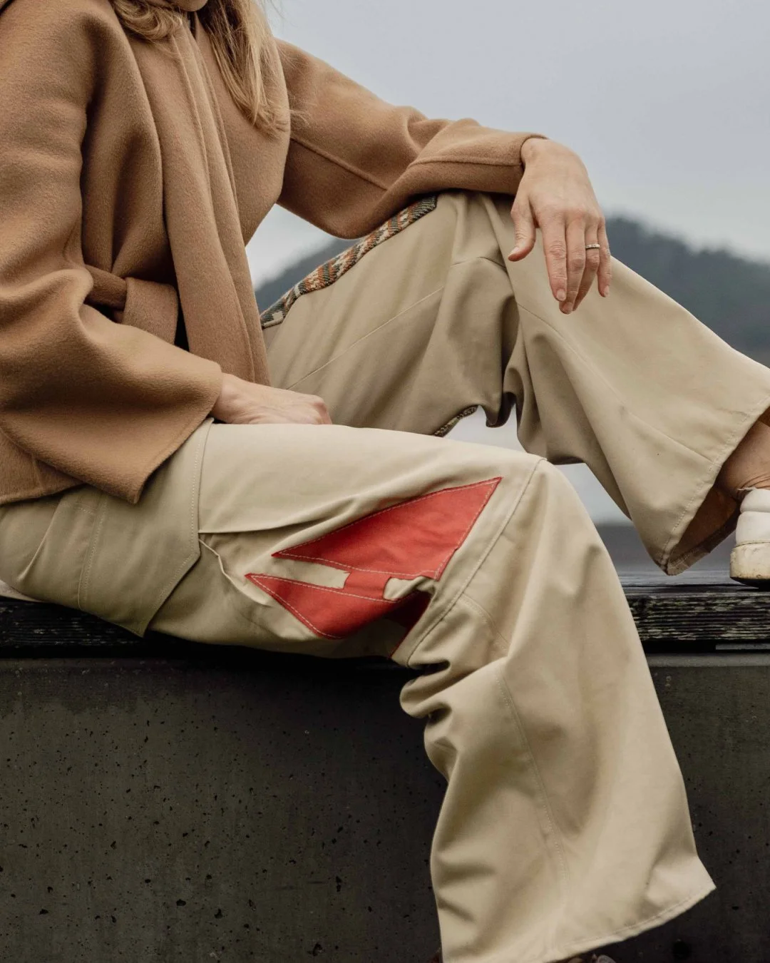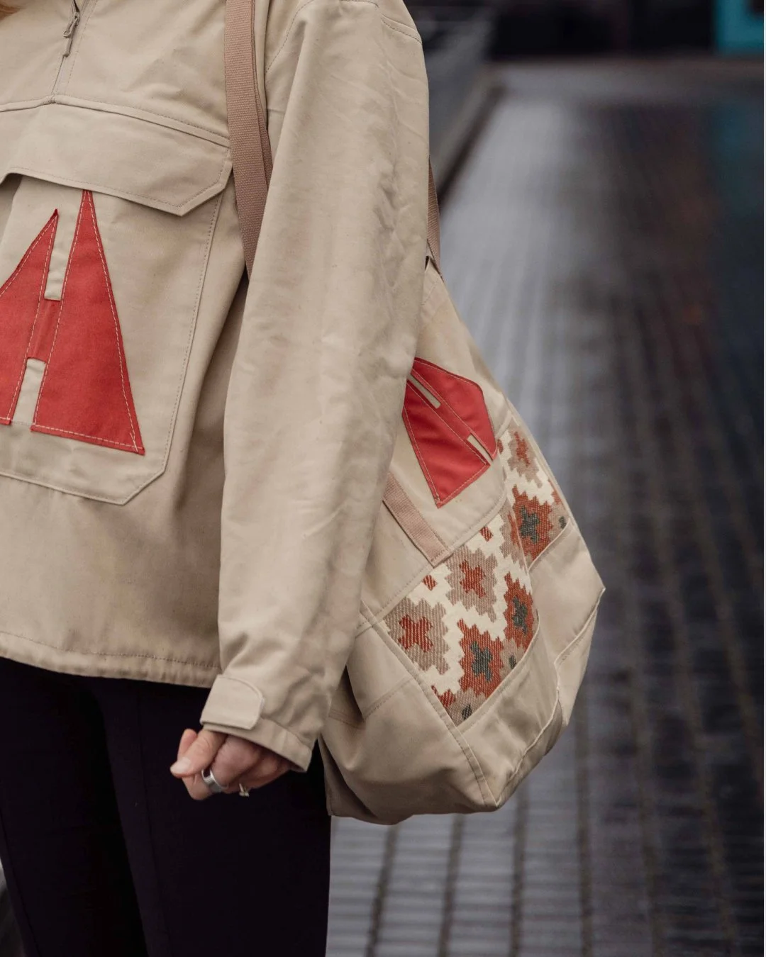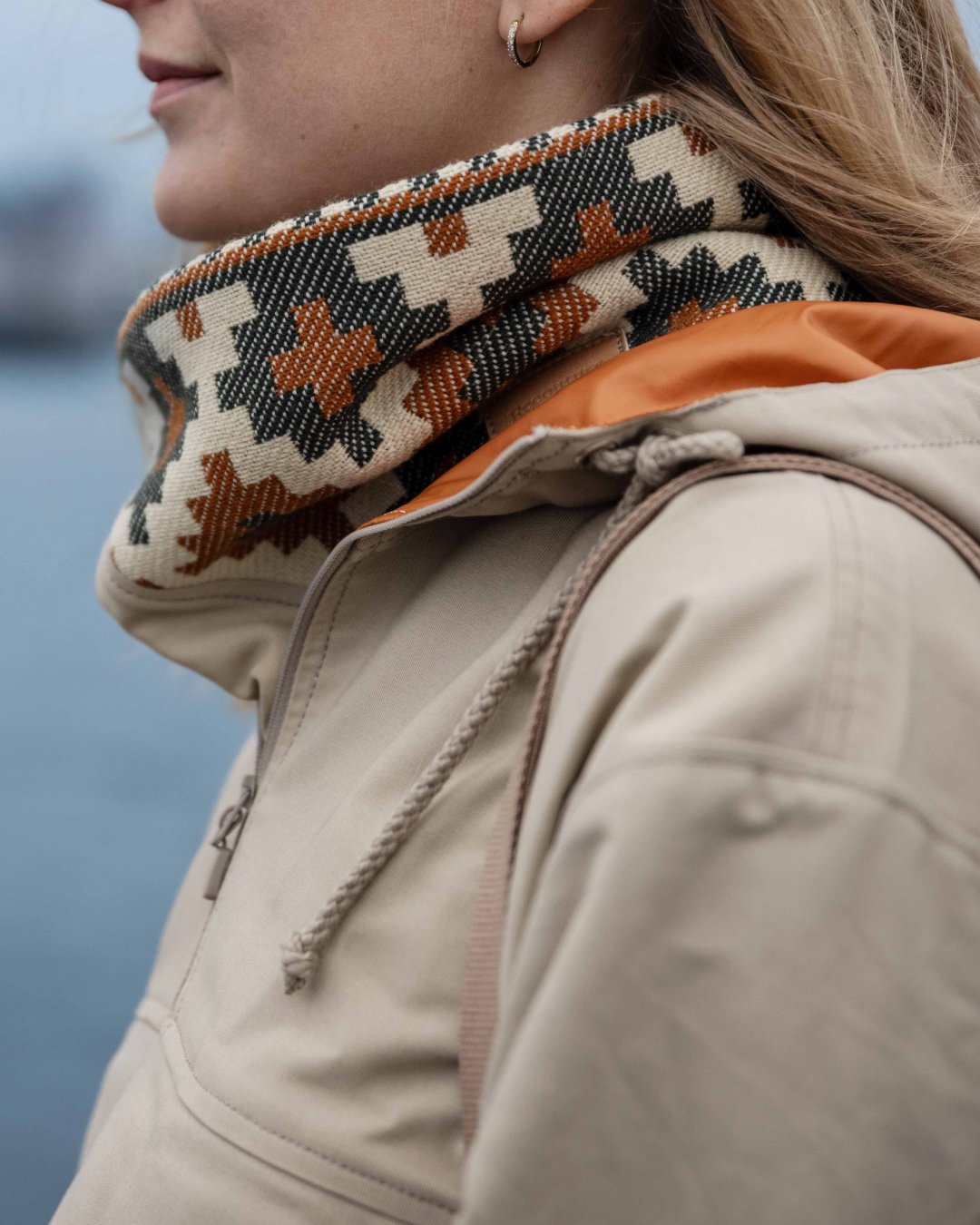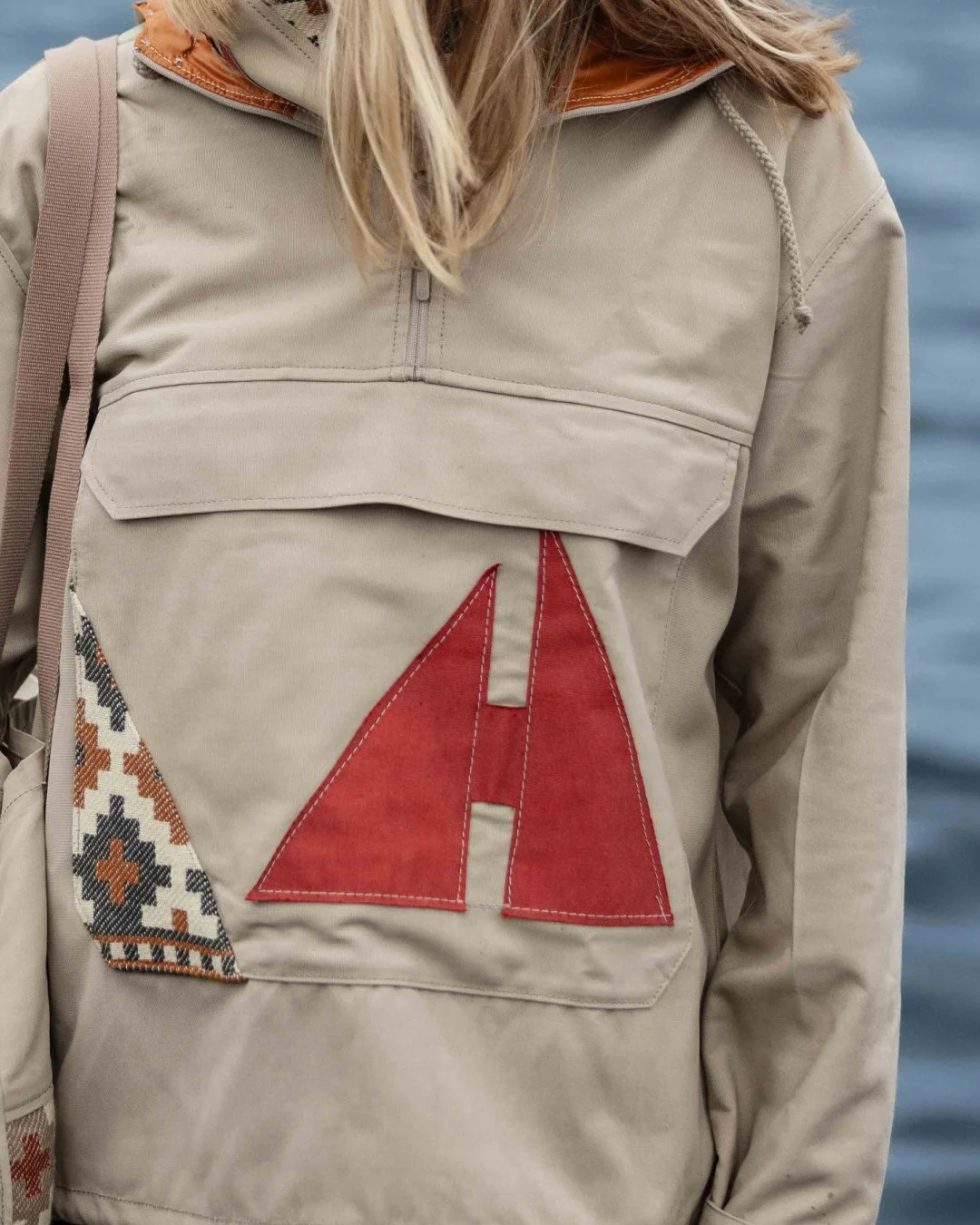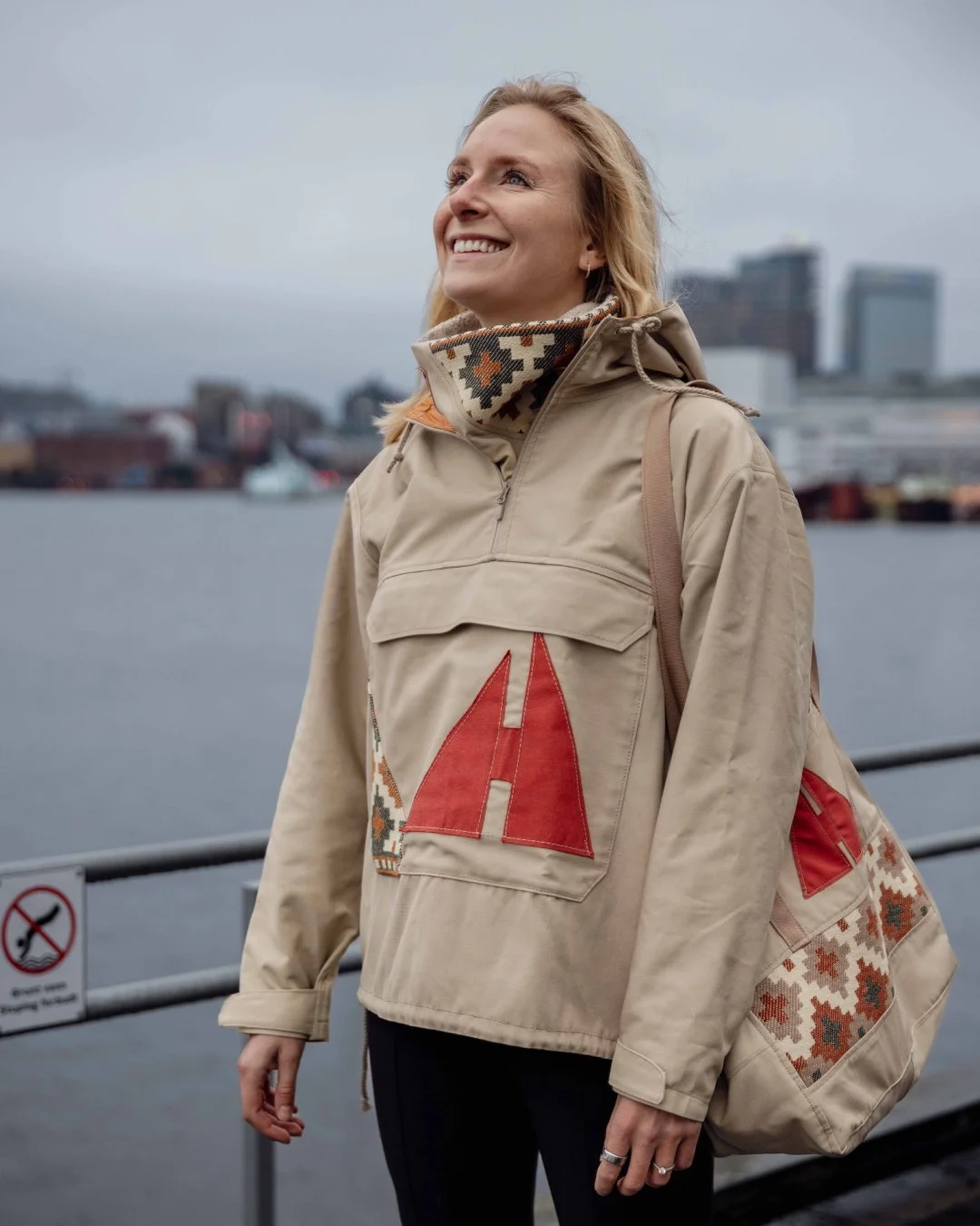 The red sail logo was originally found stitched onto the boat canopies we rescued. We’ve recreated this detail using leftover fabric — a subtle tribute to the material’s past.A functional, responsible and fully Norwegian-made piece — created to keep you warm while honoring the origins of the materials it comes from.