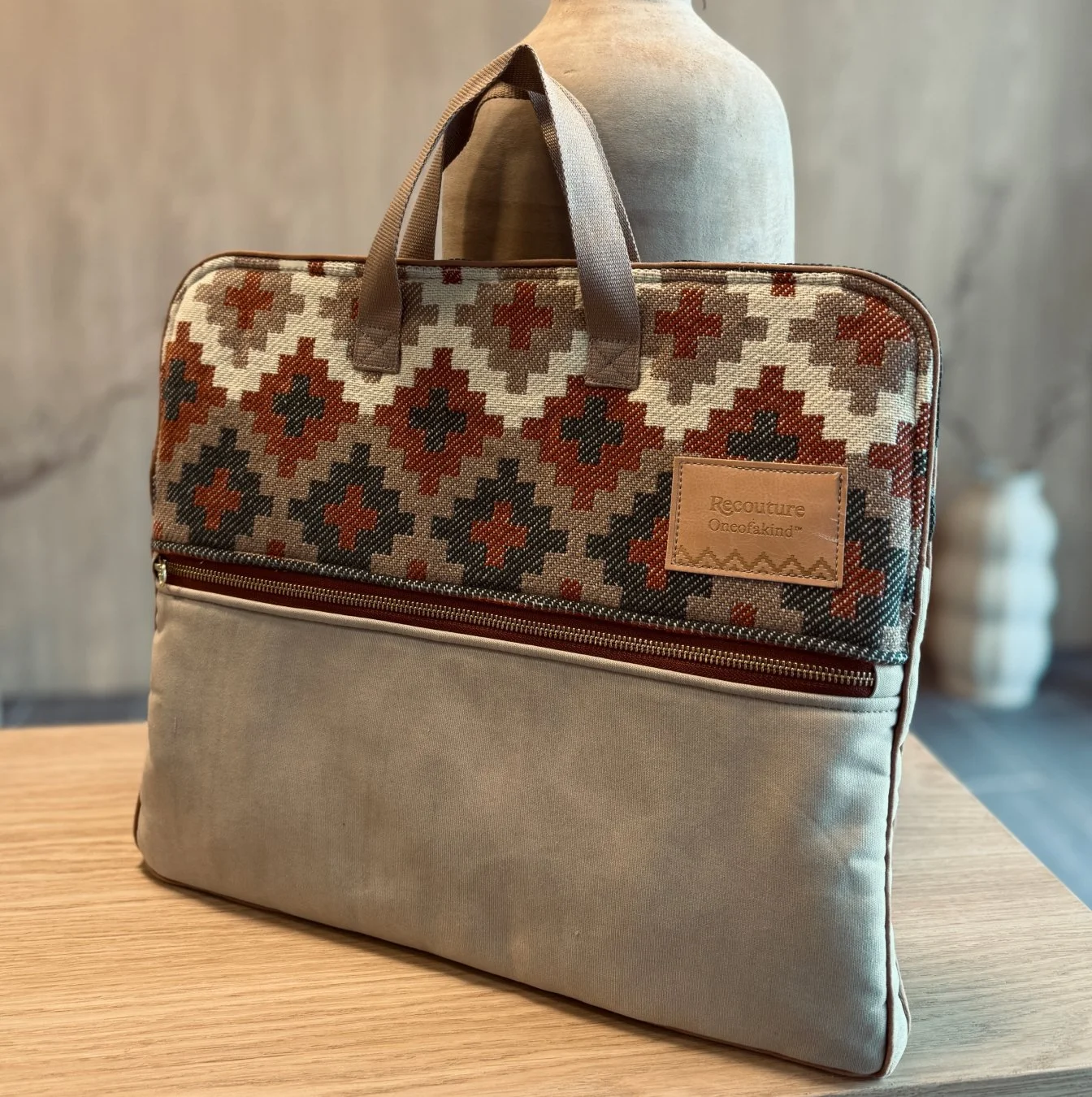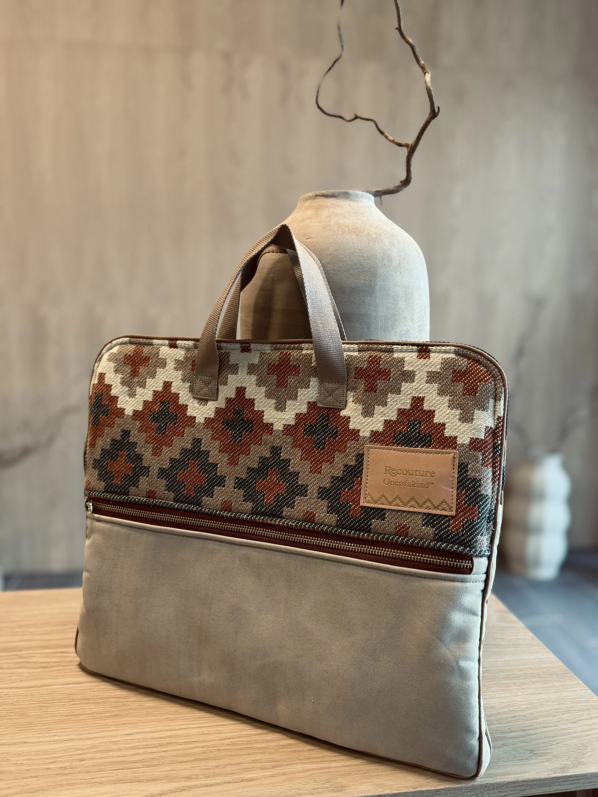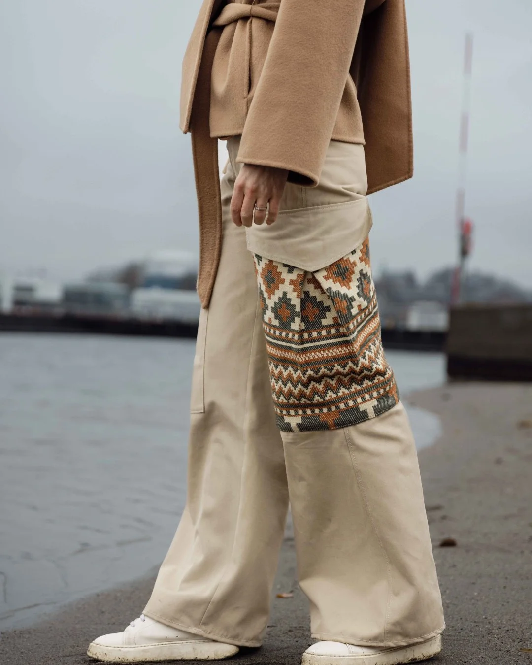 The reclaimed textiles are combined with our signature woven åkle, produced locally at Grinakervev in Hadeland. The åkle is woven with a cotton warp and 100% lambswool weft, creating the distinctive Recouture expression — rooted in Norwegian craft traditions with a modern feel.